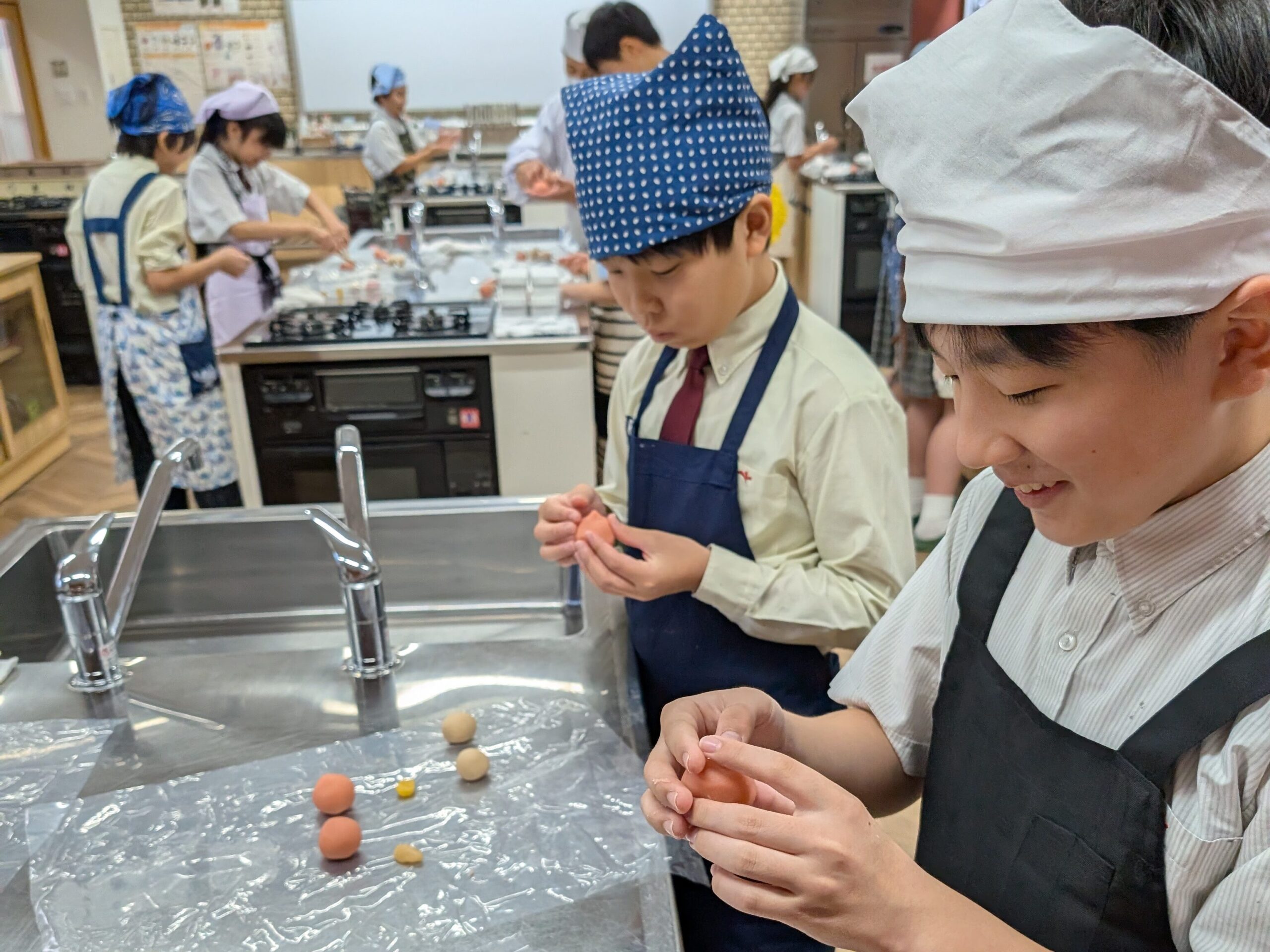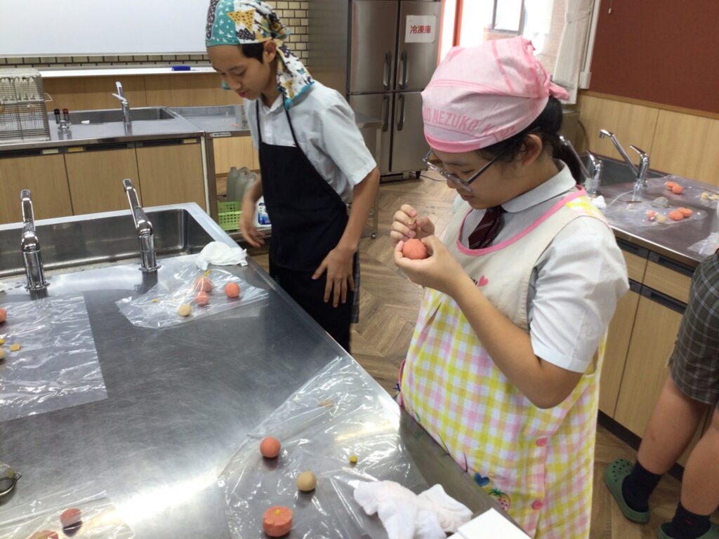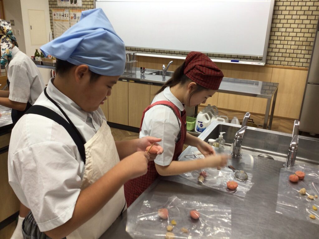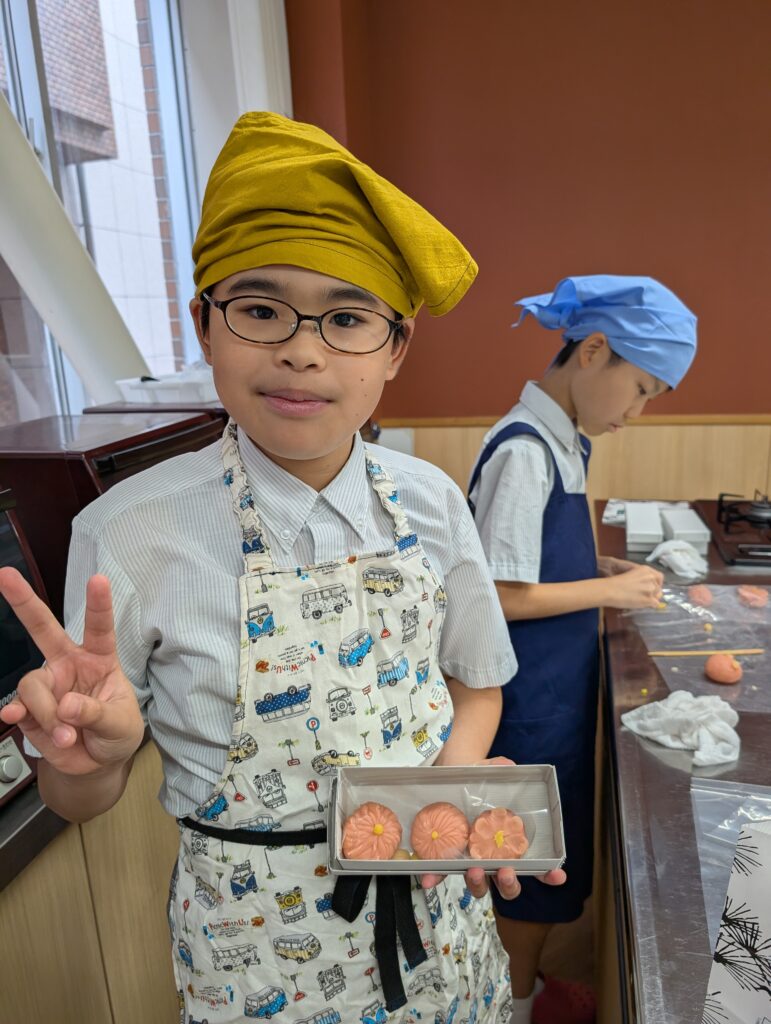 10月の茶道は、和菓子作り体験をしました。菊の花やコスモスの花を形取った和菓子に挑戦しました。白あんを包むところや花びらを線で表現していくところなど、難しいかったですが教えていただいた通りに作っていました。貴重な体験をさせていただき、改めてプロの先生の技に感心していました。