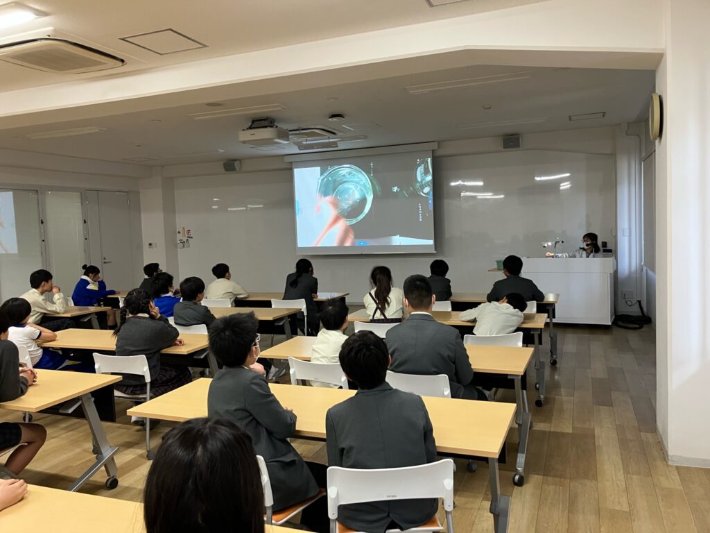 本日、学校薬剤師さんから「薬の話」をしていただきました。実験を交えながら、薬の正しい使い方と怖さを教えていただきました。もしも将来誘惑や迷う場面に出会ったときは、今日の授業を思い出し正しい選択ができる強さを持ってほしいと思います。